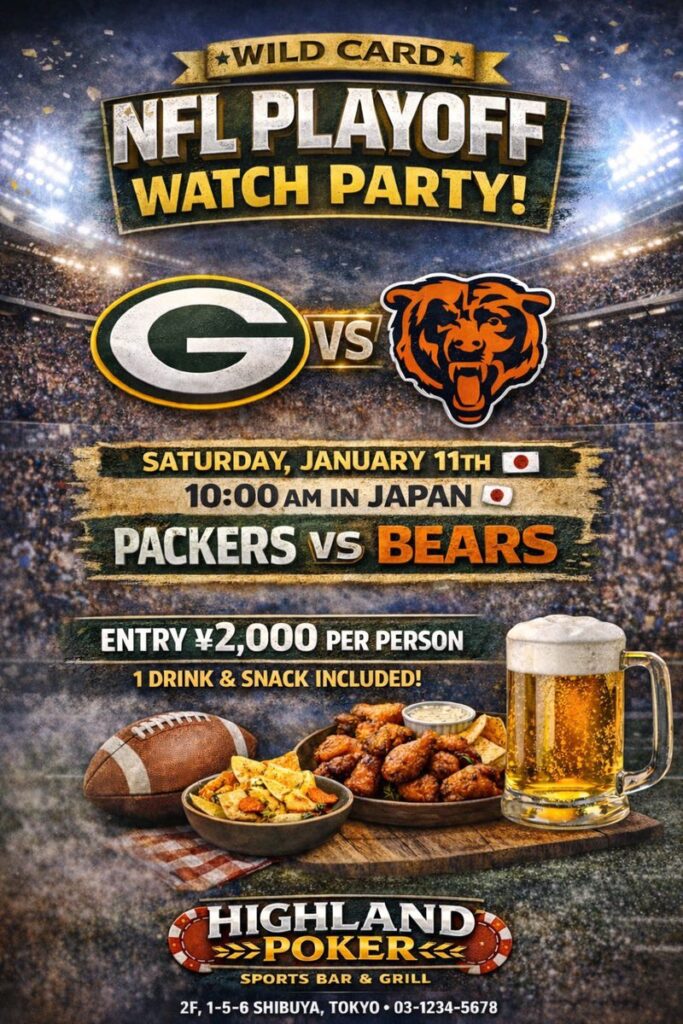 2026 0108 WATCH PARTY 1/11 ゆじれれ店長は、かつてフットボーラー🏈でした。 だから、みんなで盛り上がりながらのアメフト観戦が大好き‼️ 今度の日曜日(1月11日)、一緒に@HIGHLANDで観ませんか? 🐏1月8日(木)もふもふDailyトナメ🐏 前の記事 オリジナルパーカーが当たる‼️ 次の記事